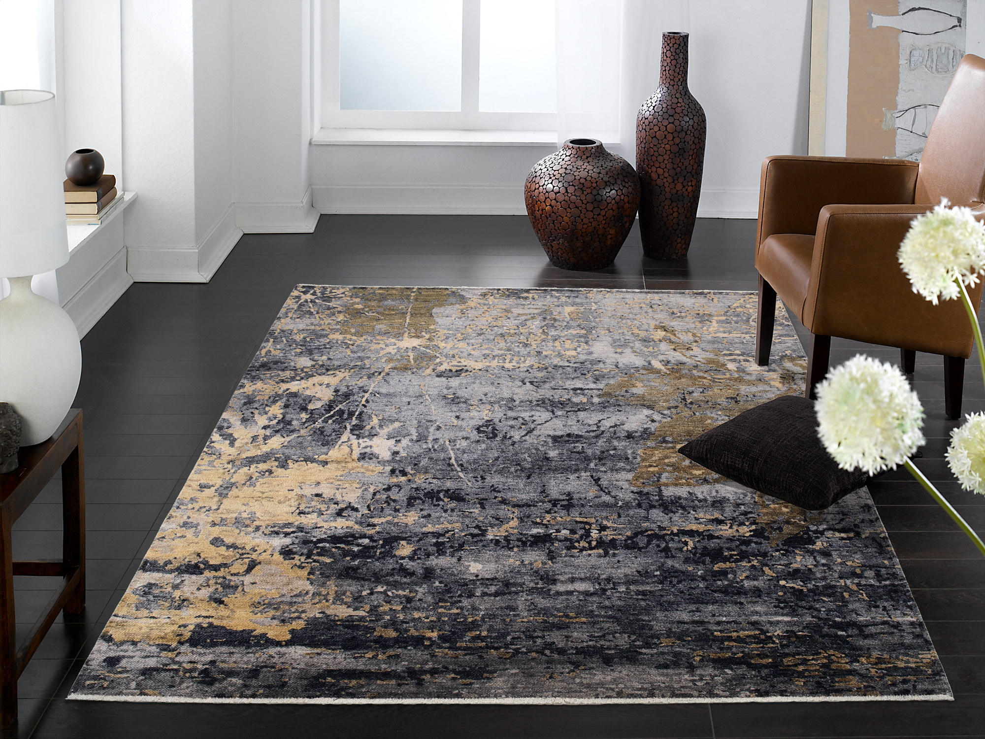 Vintage-Teppiche, so schön wie ein Gemälde und gänzlich zeitlos. Die abstrakte Musterung wirkt durch die zurückhaltende Farbgebung sehr edel. Der flache Flor lässt die Musterdetails hervortreten, sodass farbintensive Stellen fasst zu leuchten scheinen. Bei jedem der 4 Modelle dominieren zwei Farben, was die Wahl einfacher macht. Entweder den Teppich so wählen, dass er sich harmonisch in die Einrichtung einfügt oder sich als kontrastierender Farbtupfer von allem abhebt.